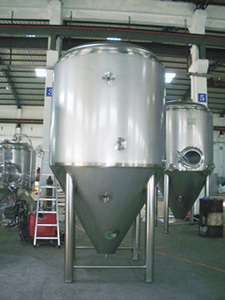 我廠設計的發酵罐為標準式罐型,這種罐型當公稱容積在6m以下時罐采用夾套式。發酵氣的冷卻或加熱,均由夾套來完成。公稱容積為6m以上時,發酵氣的冷卻由立式盤管來擔負,在罐內盤管的連接方面我們作了改進。這主要避免在罐體上多開孔,開成死角。這種連續方式在實際使用中得到滿意的效果。